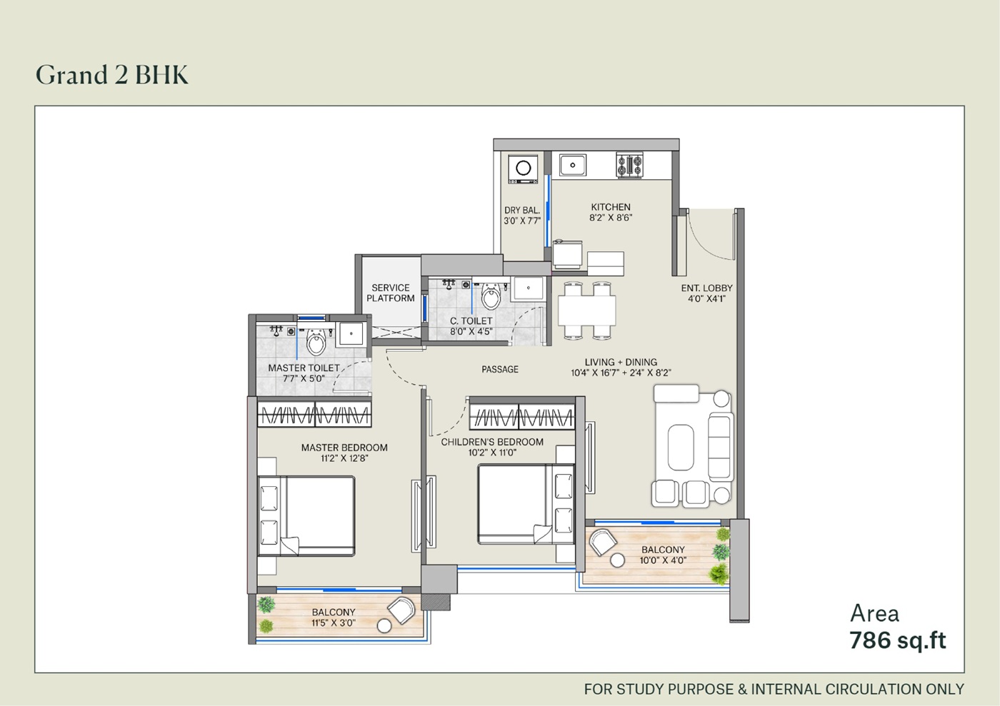 | Grand 2 BHK | 786 Sq Ft | ₹ 94.99 Lacs Onwards | |